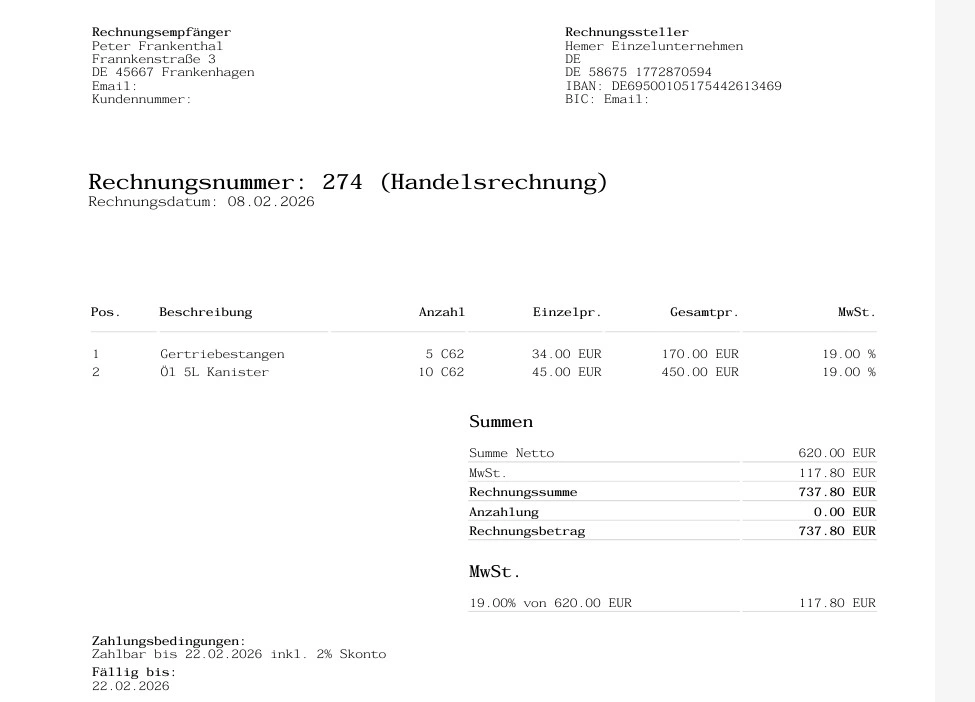 ✅ Gesetzeskonform: Erfüllt alle Anforderungen für B2B-Rechnungen ab 2025.