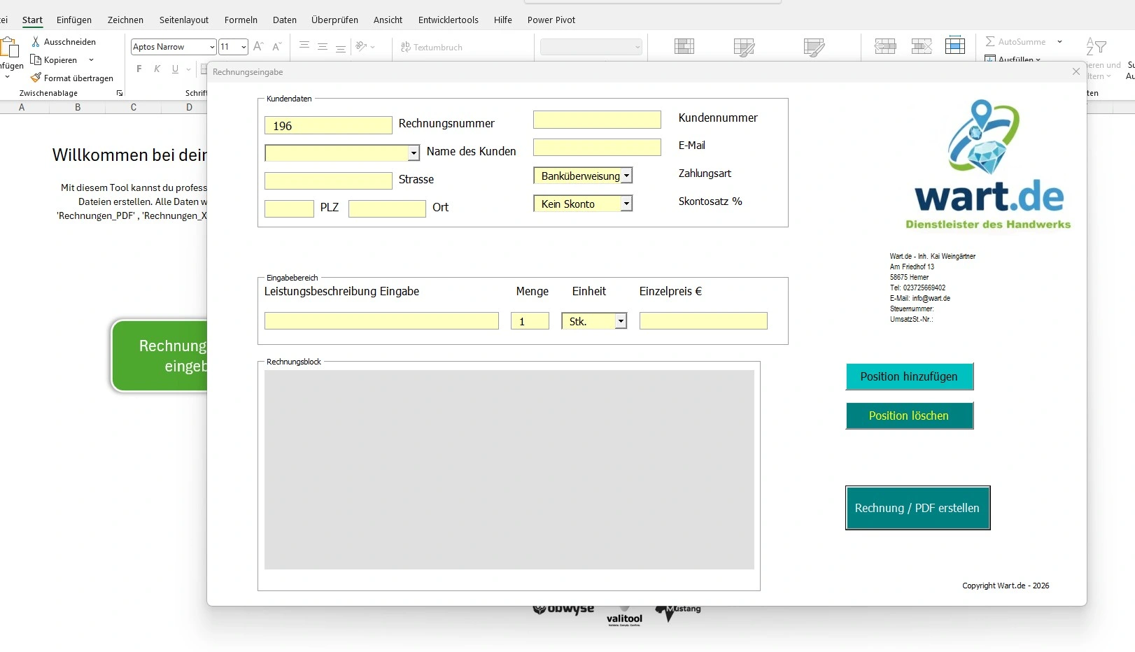 Rechnungstool Pro: Die E-Rechnungs-Revolution für Excel-Fans.